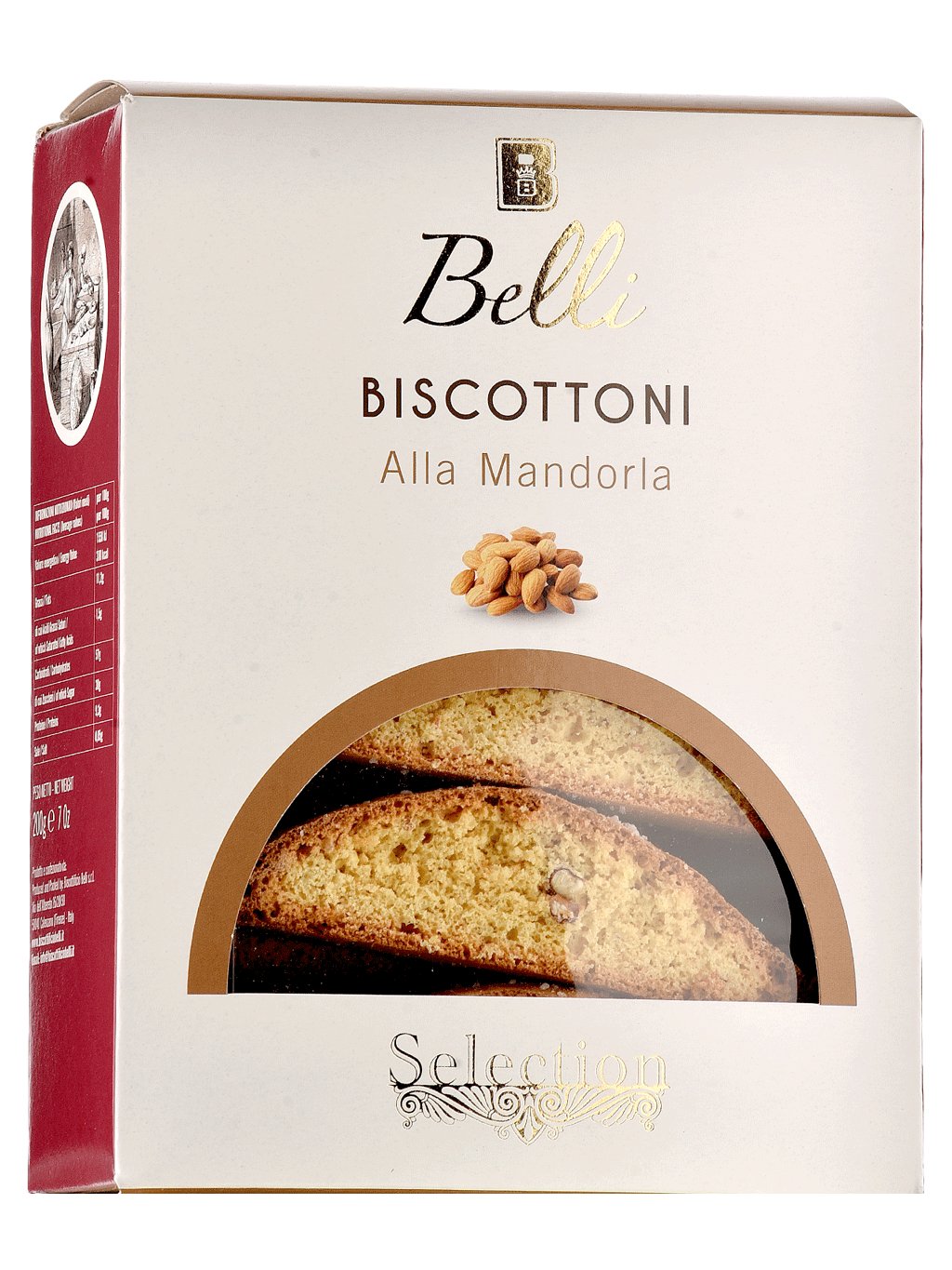 Složení: pšeničná mouka, cukr, mandle (25%), vejce, máslo (mléko), med, sůl. Kypřicí látky: hydrogenuhličitan amonný, difosforečnan disodný, hydrogenuhličitan sodný, aromata. Může obsahovat ořechy, sóju a hořčici.