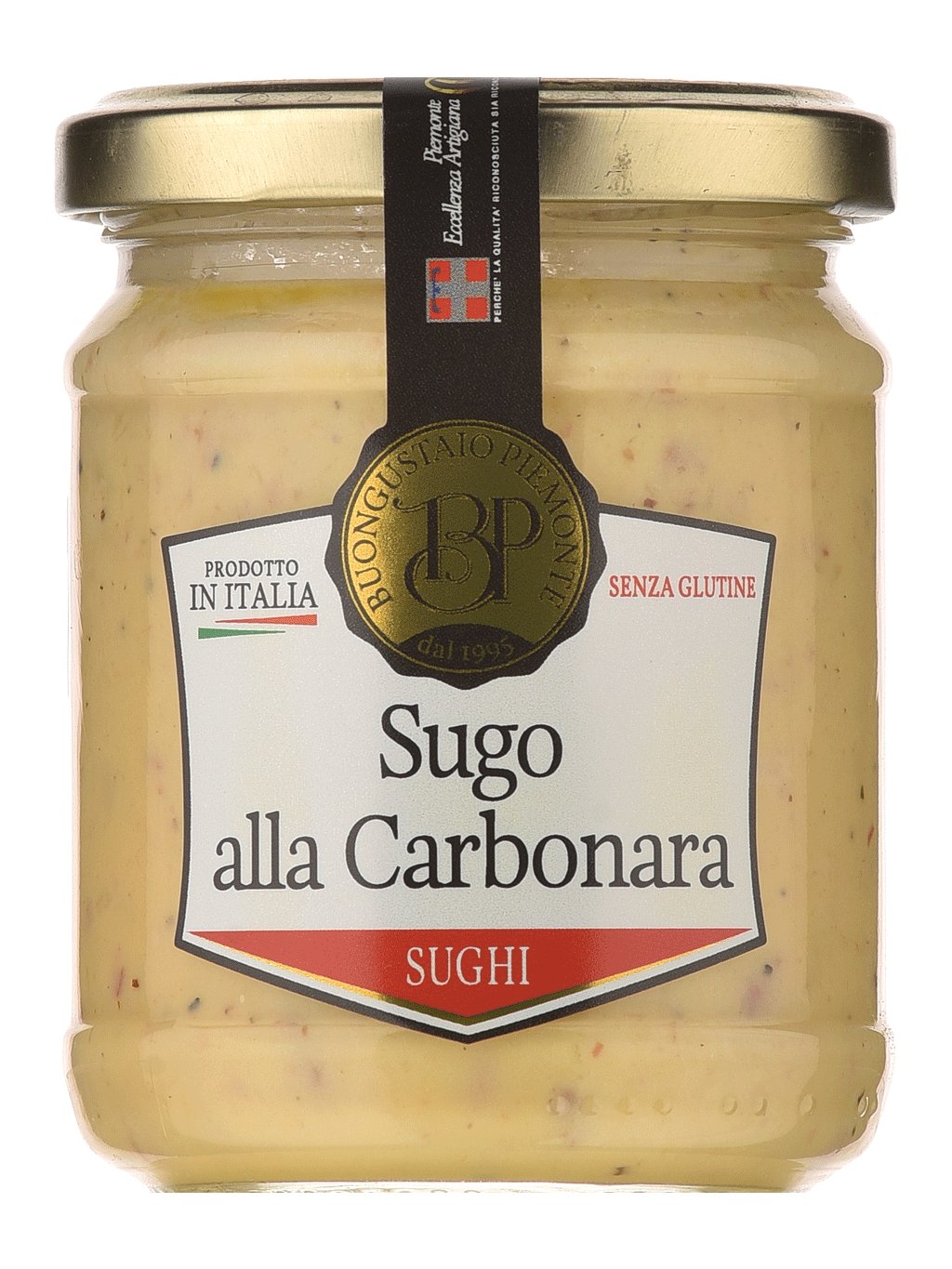 Složení: voda, vepřové maso (Itálie) (čerstvá a uzená slanina 25%, slanina Guanciale 15%), 40%, pasterizovaný vaječný žloutek (Itálie) 12%, cibule, kukuřičný škrob, sůl, cukr, černý pepř, uzené aroma, konzervant: kyselina sorbová, benzoan sodný.