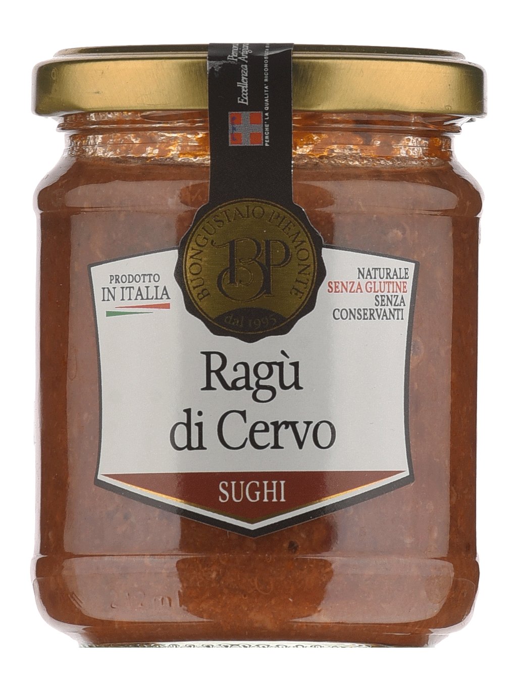 Jemné ragú z kvalitního jeleního masa, které je pomalu dušené s italskými rajčaty, kořením a bylinkami, čímž získá bohatou chuť a jemnou strukturu.