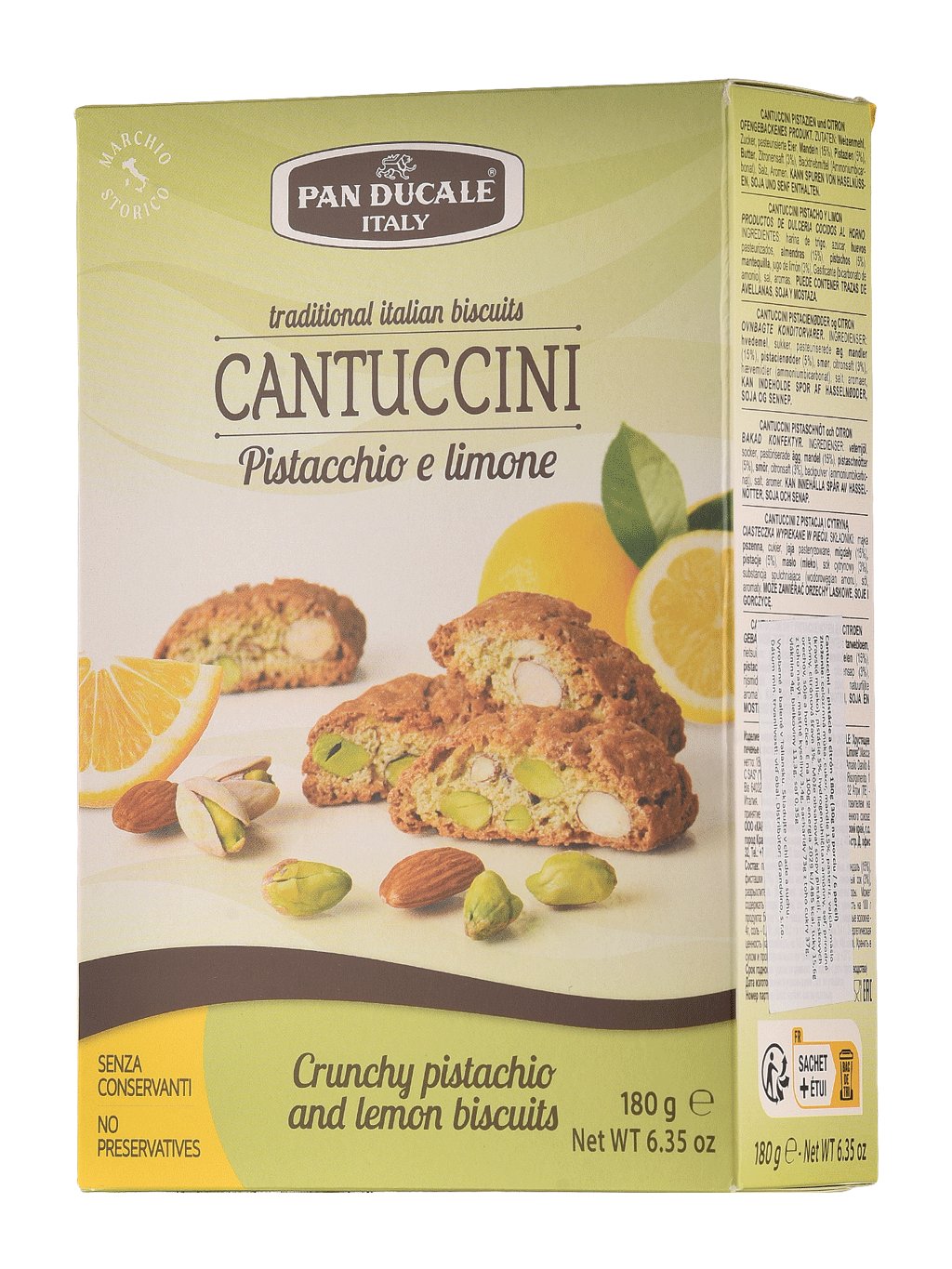 Křupavé cantuccini s mandlemi, pistáciemi a citronovou šťávou pro svěží a vyváženou chuť. Připravené z čerstvých vajec a másla, tradičně dvakrát pečené podle rodinného receptu. Výjimečné italské sušenky ke kávě, čaji nebo jako sladká tečka dne.