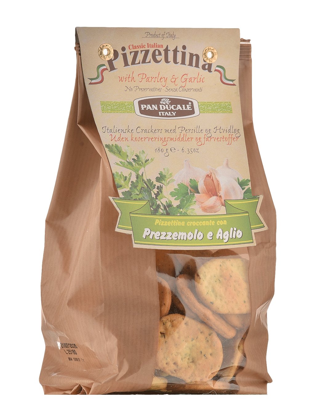 Křupavé a voňavé slané sušenky s příchutí petrželky a česneku z přírodně kvašeného těsta. Ideální na studené mísy, jako příloha k salátům, ke sklence vína nebo jen tak samotné. Jsou lehké a zdravé, protože se pečou v troubě.