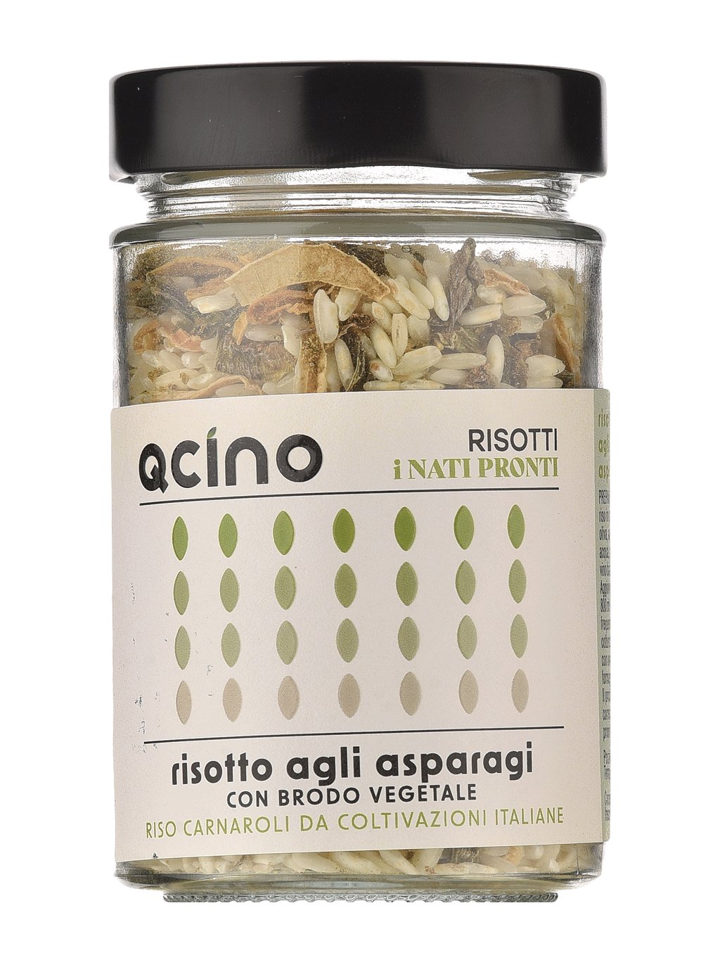 Složení: italská rýže Carnaroli 98%, sušený chřest 3,5%, zeleninový vývar (sůl, sušená zelenina (rajčata, cibule, mrkev, česnek), cukr, aromatické bylinky, koření, aroma, slunečnicový olej), cibule, petržel.
