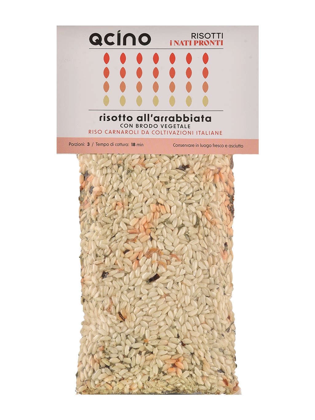 Složení: italská rýže Carnaroli 92%, sušený česnek, drcená chilli paprička 0,8%, zeleninový vývar (sůl, sušená zelenina (rajčata, cibule, mrkev, česnek), cukr, aromatické bylinky, koření, aroma, slunečnicový olej), sušená cibule, aromatické bylinky, koření. Obsahuje česnekové siřičitany.