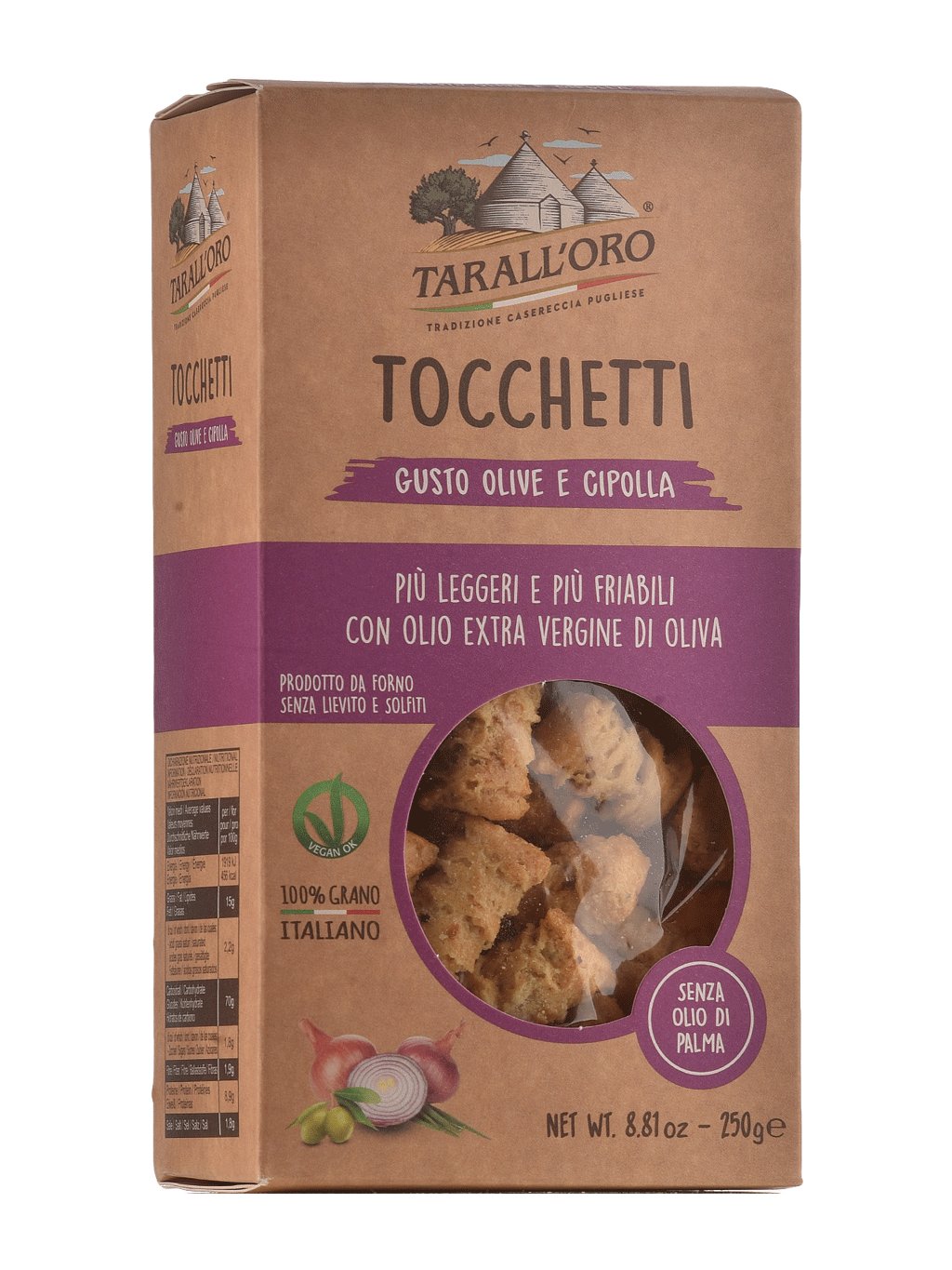 Složení: hladká pšeničná mouka, slunečnicový olej s vysokým obsahem kyseliny olejové, 3,1% oliv, sůl, 1,5% extra panenský olivový olej, 0,8% sušená cibule. Může obsahovat stopy sóji, sezamu a hořčice. Bez siřičitanů a kvasnic.