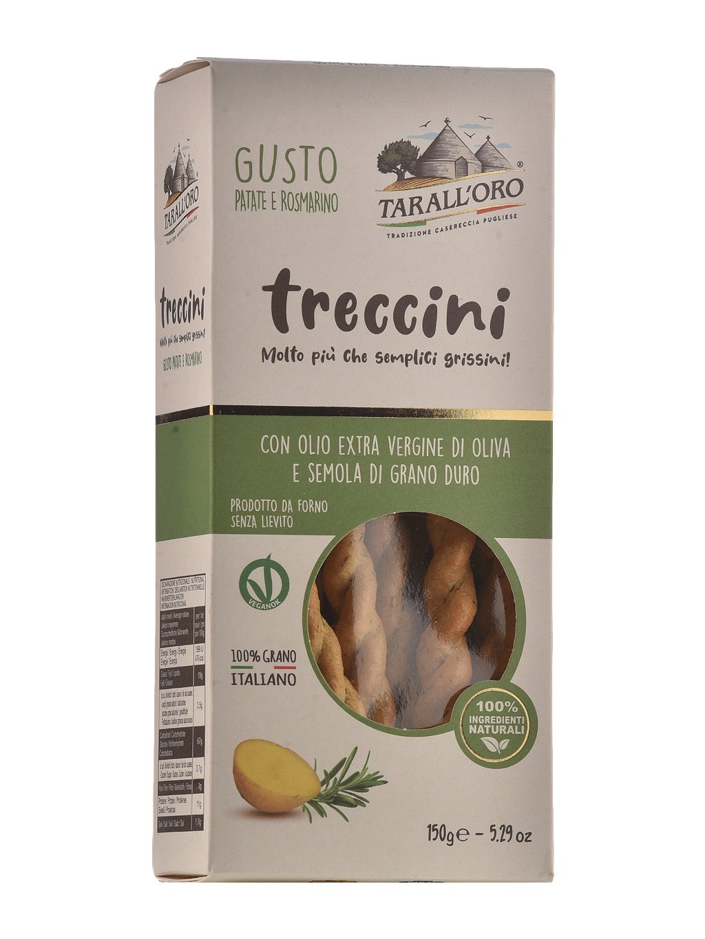 Křupavé tyčinky z Apulie s jemnou bramborovou chutí a nádechem rozmarýnu. Přirozená vůně pečiva, křupavá struktura a příjemně slaná chuť. Pečené dozlatova a vyrobené z kvalitních surovin. Skvěle se hodí k salátu, sýru, olivám, ale také ke sklence vína.