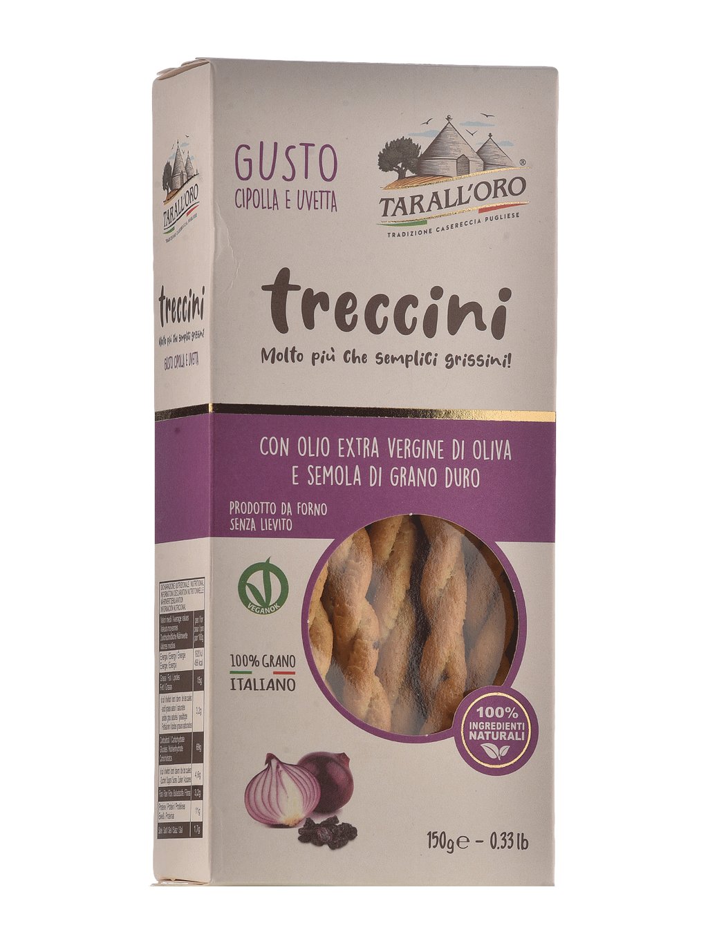 Křupavé tyčinky z Apulie s červenou cibulí a rozinkami. Přírodní vůně pečiva, křupavá struktura a příjemně slaná chuť. Pečené dozlatova a vyrobené z kvalitních surovin. Skvěle se hodí k salátu, sýru, olivám, ale také ke sklence vína.
